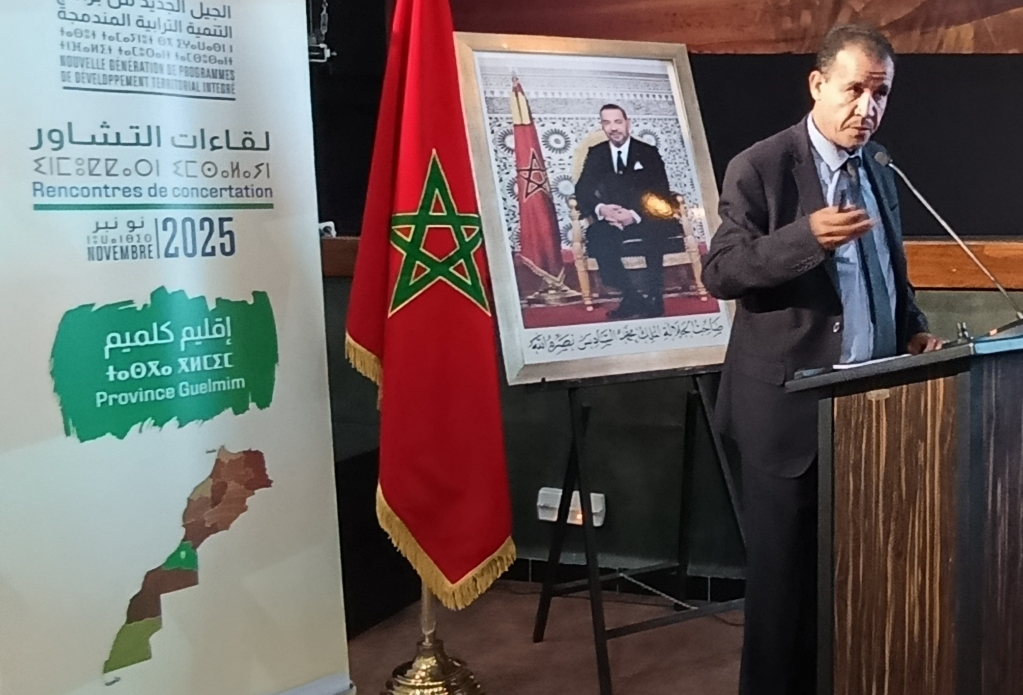 يحتضن فضاء الندوات والاستقبال بكلميم، في هذه الأثناء، لقاء تشاوريا موسعا يروم مناقشة إعداد جيل جديد من برامج التنمية الترابية المندمجة، وذلك برئاسة عامل إقليم كلميم والي الجهة، وبحضور فاعلين إقليميين وممثلي المجتمع المدني والمؤسسات المنتخبة والمصالح اللاممركزة وفعاليات إقتصادية.